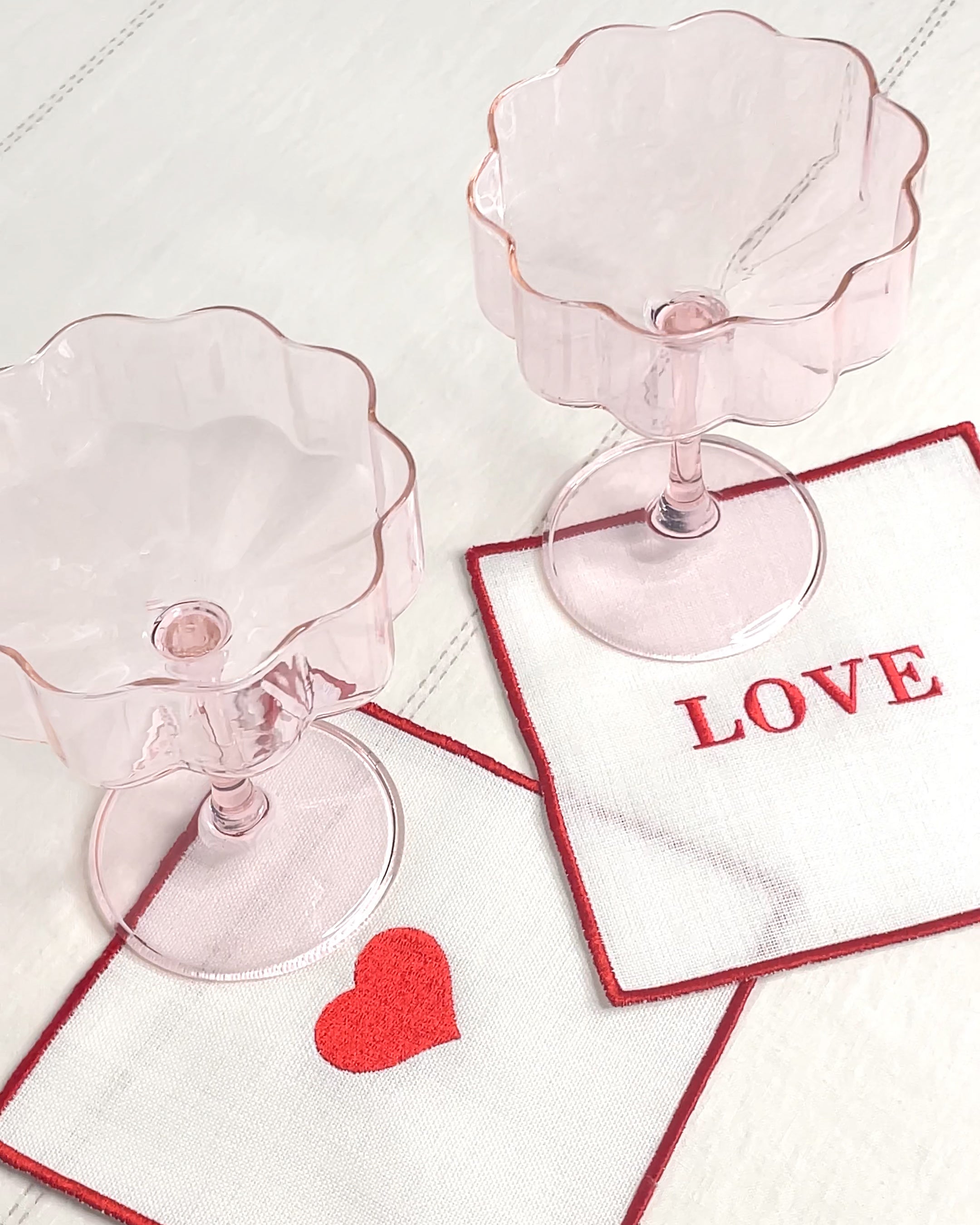 Elevate your table setting with Valentine's Love Napkins or the Valentine's Cocktail Set for a refined, textile touch. Serve your creation on the Daisy Long Ceramic Tray and pair it with the stunning Two-Tone Pitcher and Pink Wave Coupe Glasses. Even the finest meal is improved by the right tools—the Berlingot 24-Piece Set ensures every bite feels like an occasion.