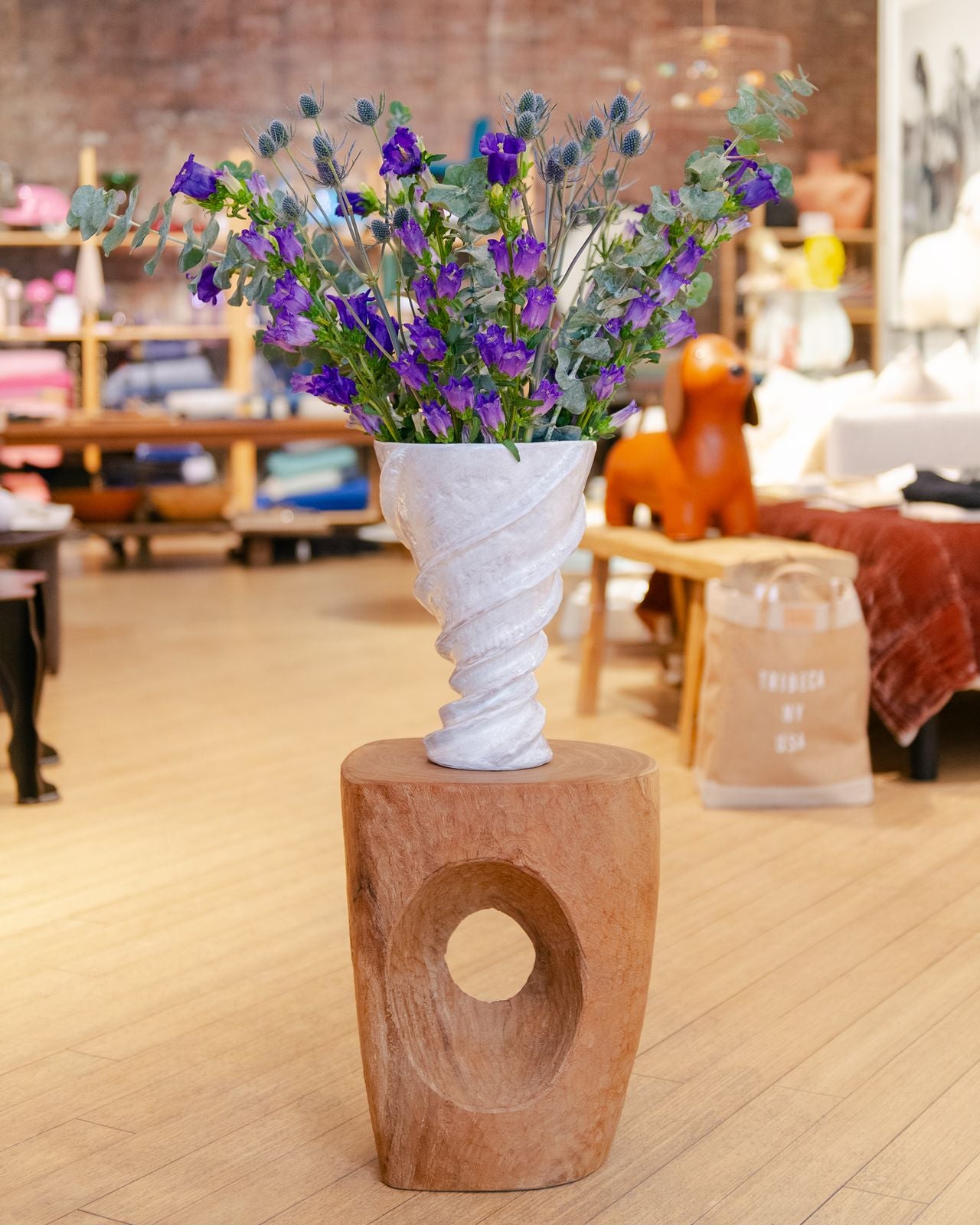 Take the first dozen roses and arrange them in a sculptural vessel, such as The Old Enchantment Round Footed Vase or a unique piece from the CYM Ceramics collection. Place this centerpiece prominently alongside a chilled bottle of champagne and hand-blown crystal flutes.